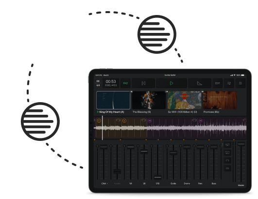 Buat, simpan, dan bagikan setlist & aransemen lagu dengan tim Anda.