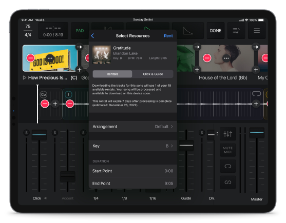 Membangun Koleksi MultiTracks membutuhkan investasi di muka. Langganan Sewa adalah cara termudah untuk memulai dengan MultiTracks dalam Playback.